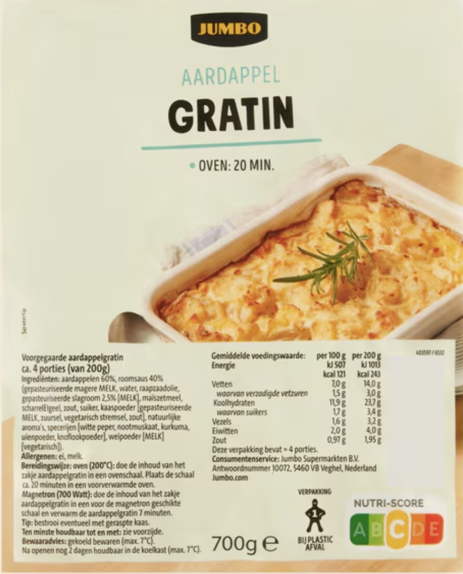 De terugroepactie betreft de Jumbo Aardappelgratin Kruidenboter van 450 gram. Het product is te herkennen aan de streepjescode met EAN-code 8718452931392. Daarnaast gaat het uitsluitend om verpakkingen met een THT-datum van 21-1-2026. Andere varianten of houdbaarheidsdata vallen niet onder deze actie, zo laat de supermarkt weten.