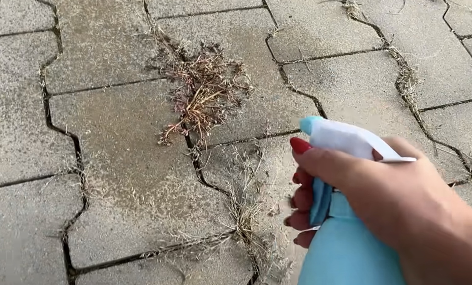 Giet of spuit vooral op de voegen waar het groen zit. Een droge dag is het handigst, want regen spoelt het mengsel te snel weg. Op een zonnige dag werkt het vaak nóg beter door extra uitdroging.