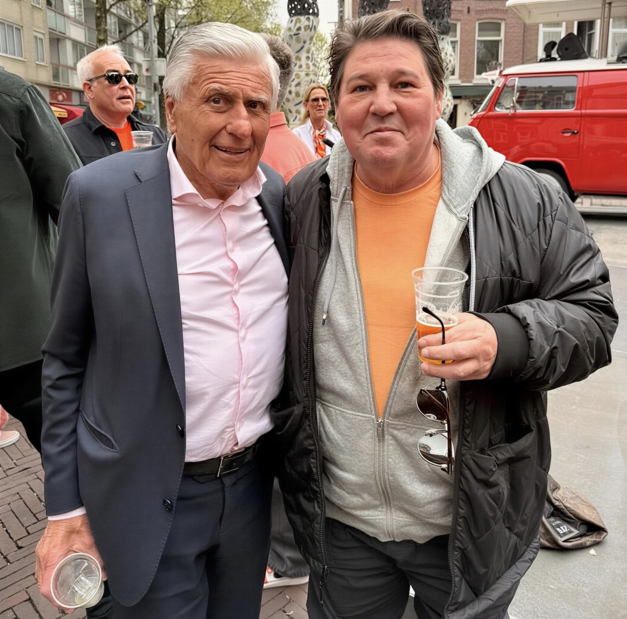 Tijdens de viering van Koningsdag trok Krabbé de stad Amsterdam in, waar de sfeer zoals ieder jaar uitbundig was. Te midden van de drukte liep hij onverwacht voetbalicoon Sjaak Swart tegen het lijf. De ontmoeting leek spontaan en werd direct vastgelegd op beeld. De foto toont twee bekende gezichten die zichtbaar genieten van het moment en de feestelijke omgeving.