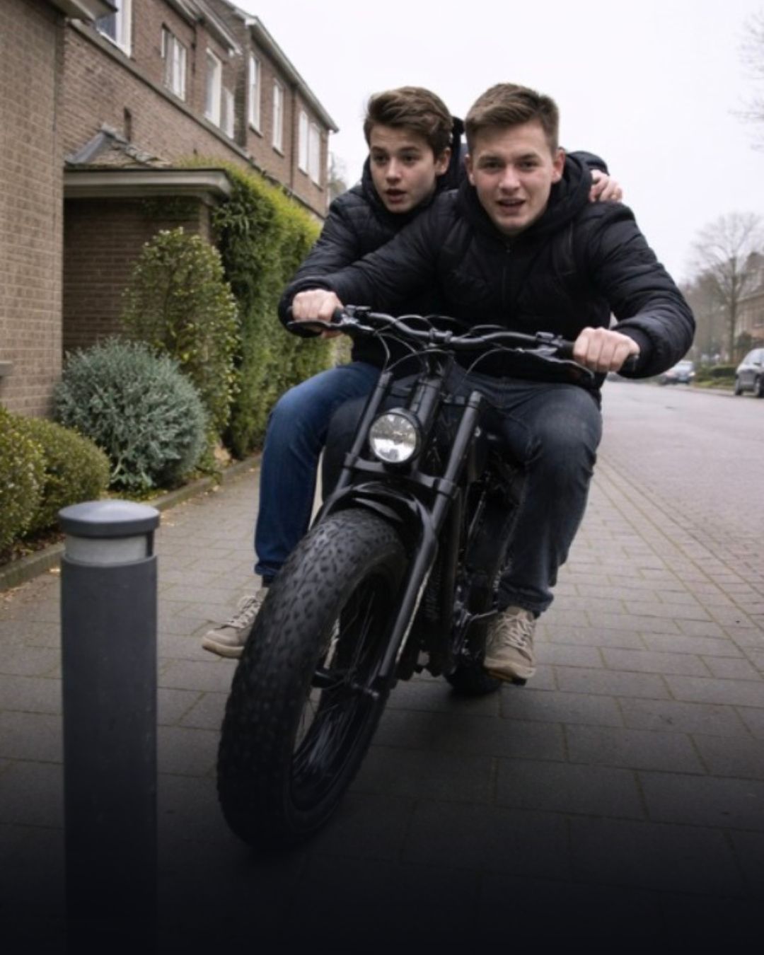 ZIEN: Fatbike-jochies scheuren over stoep maar zien paaltje te laat en crashen hard